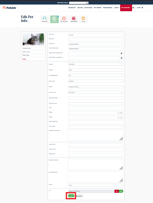 - Enter desired changes and click on the green Save button at the bottom of the page to save your changes