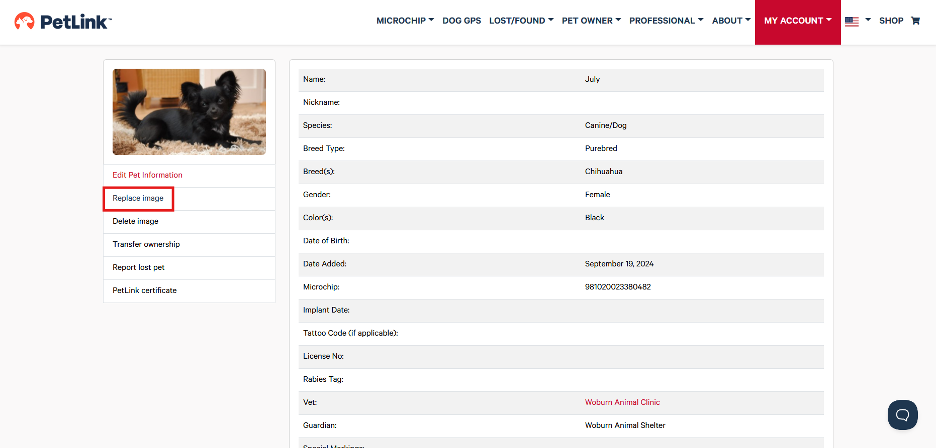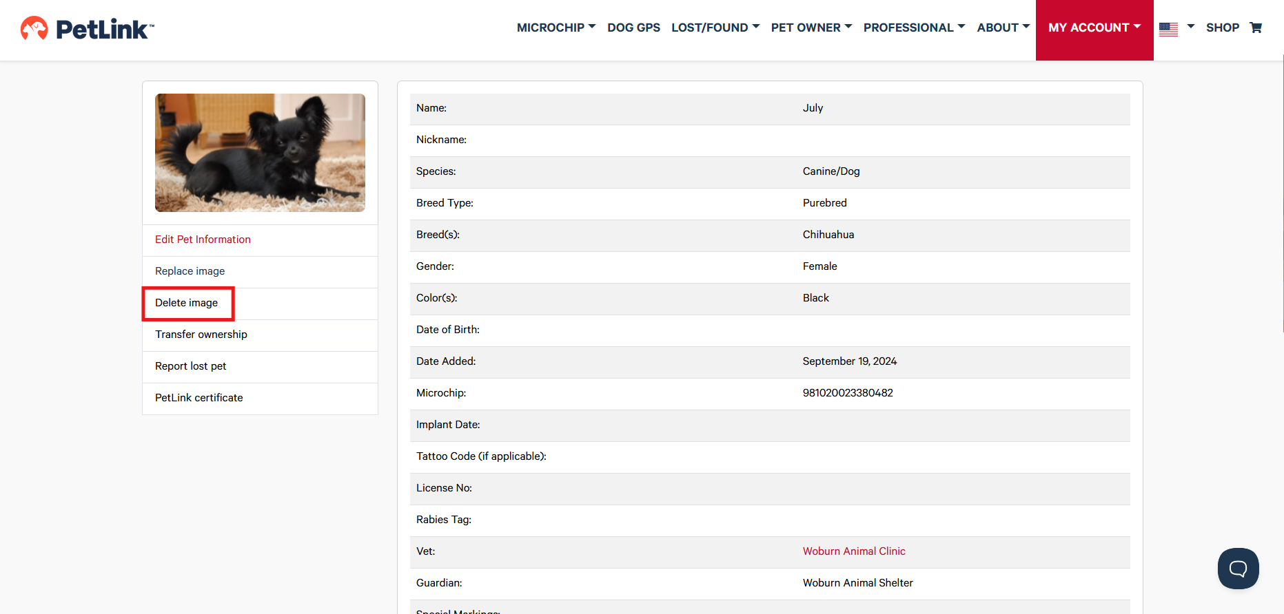 If you wish to replace or delete your pet's picture you can do so as needed;
