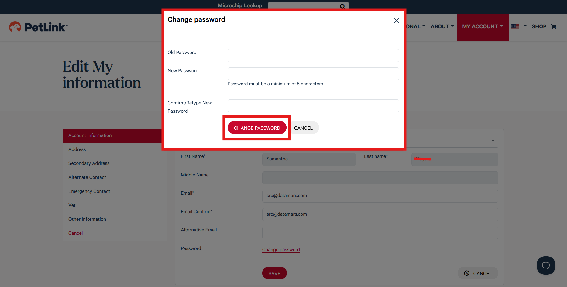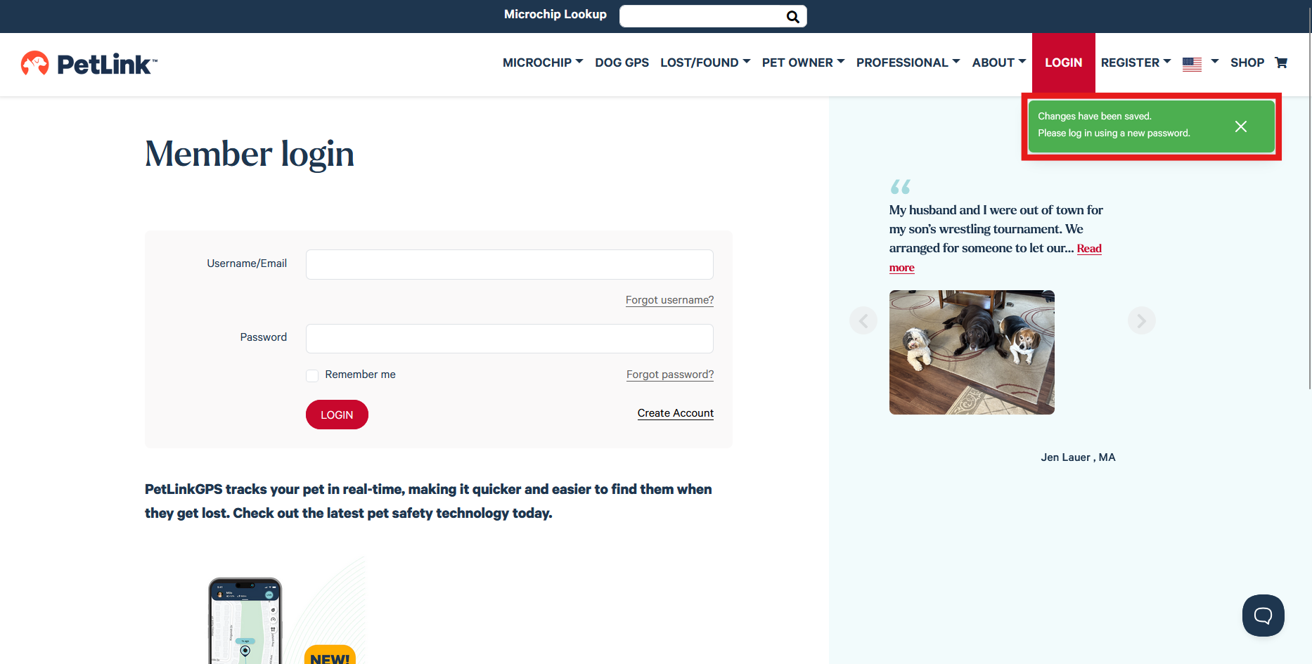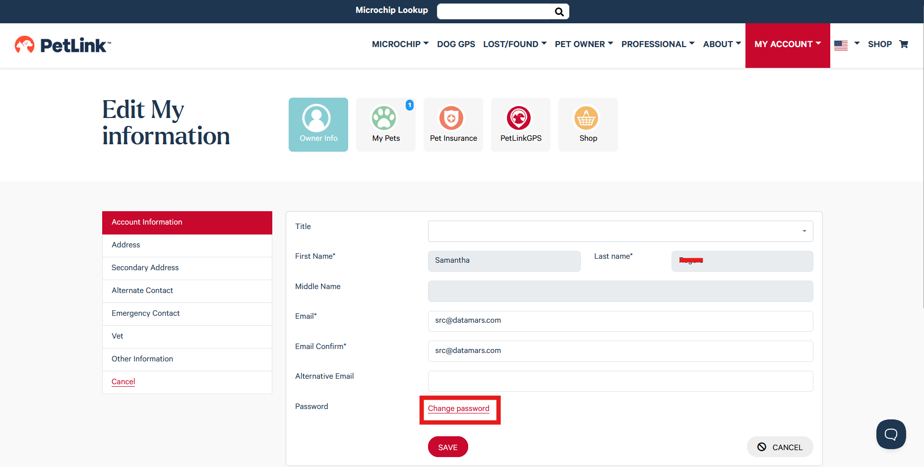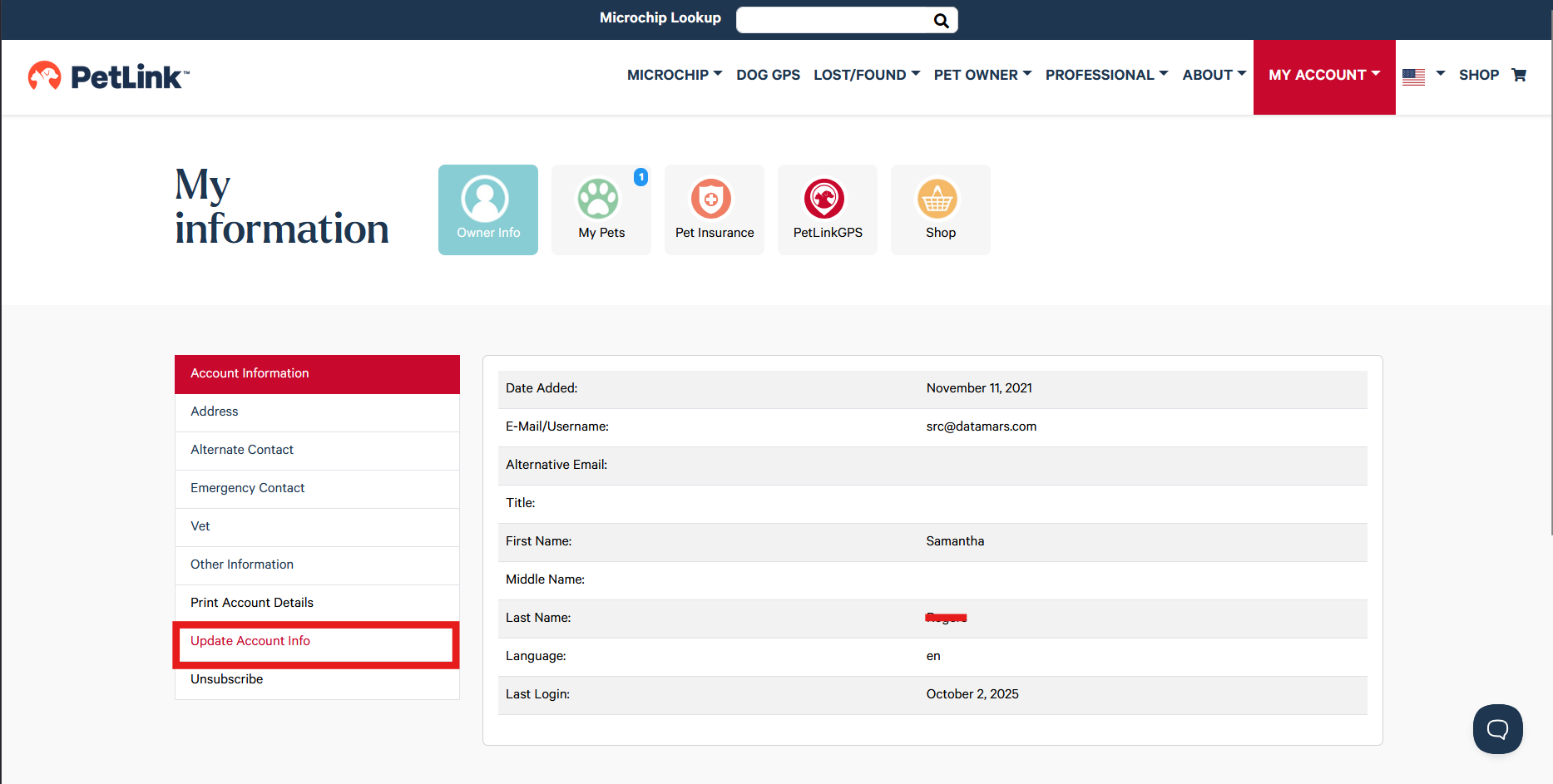 1. Once you log into your account you can update the password by clicking on Owner Info