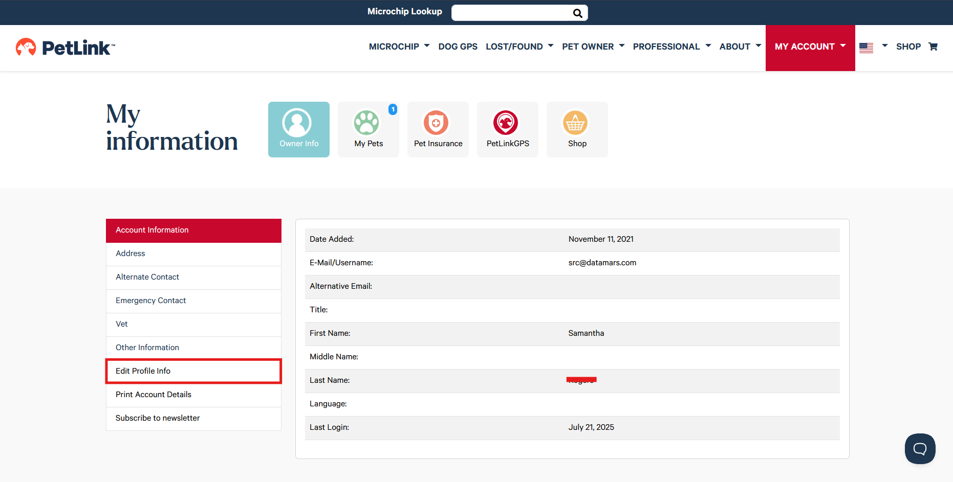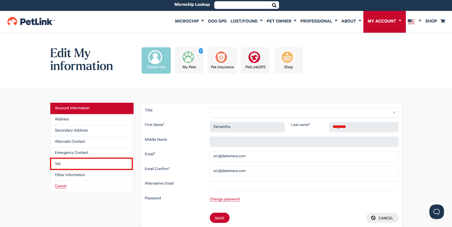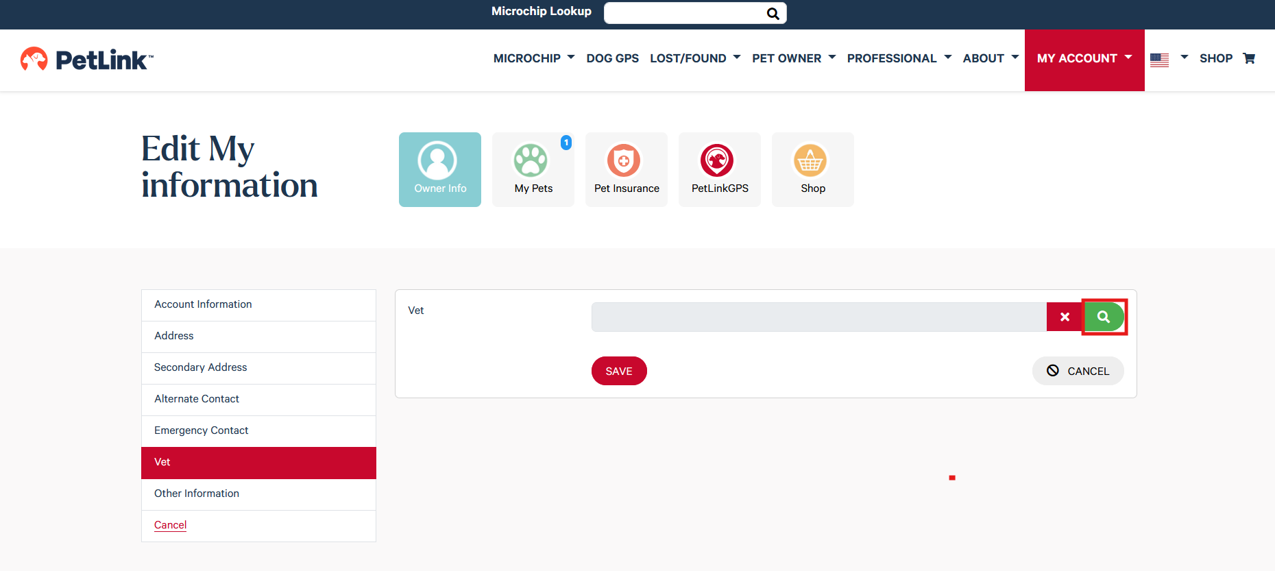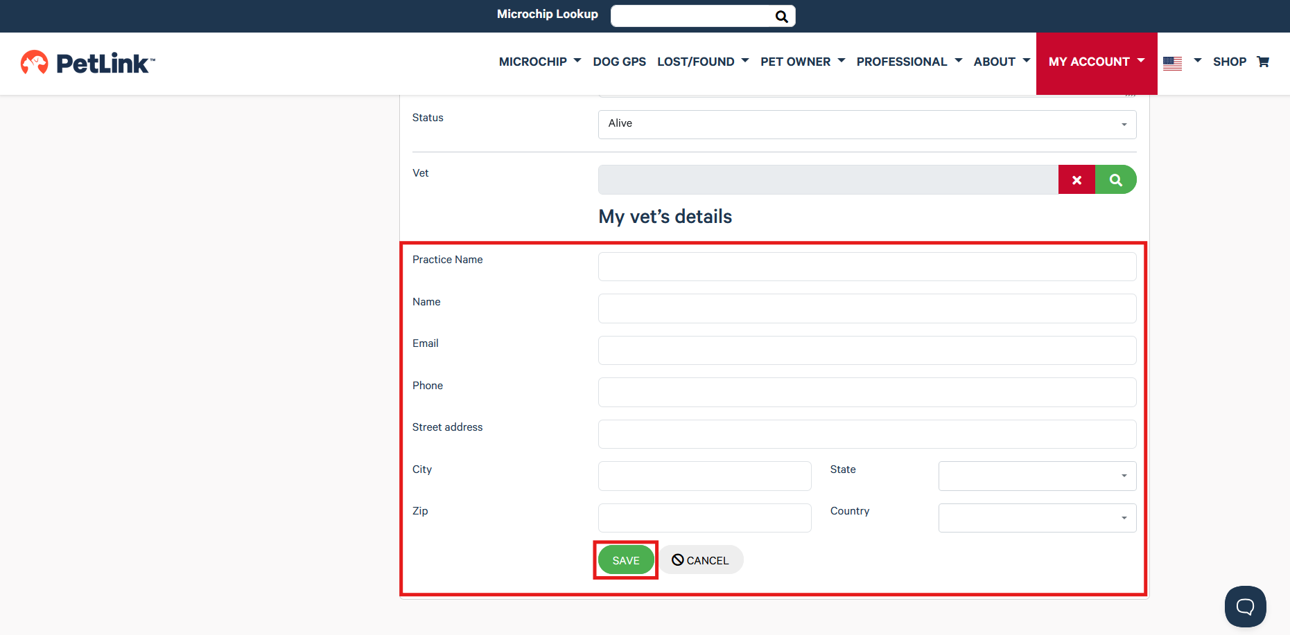 If your vet does NOT have an account with PetLink, you can add their details to your pet's profile: