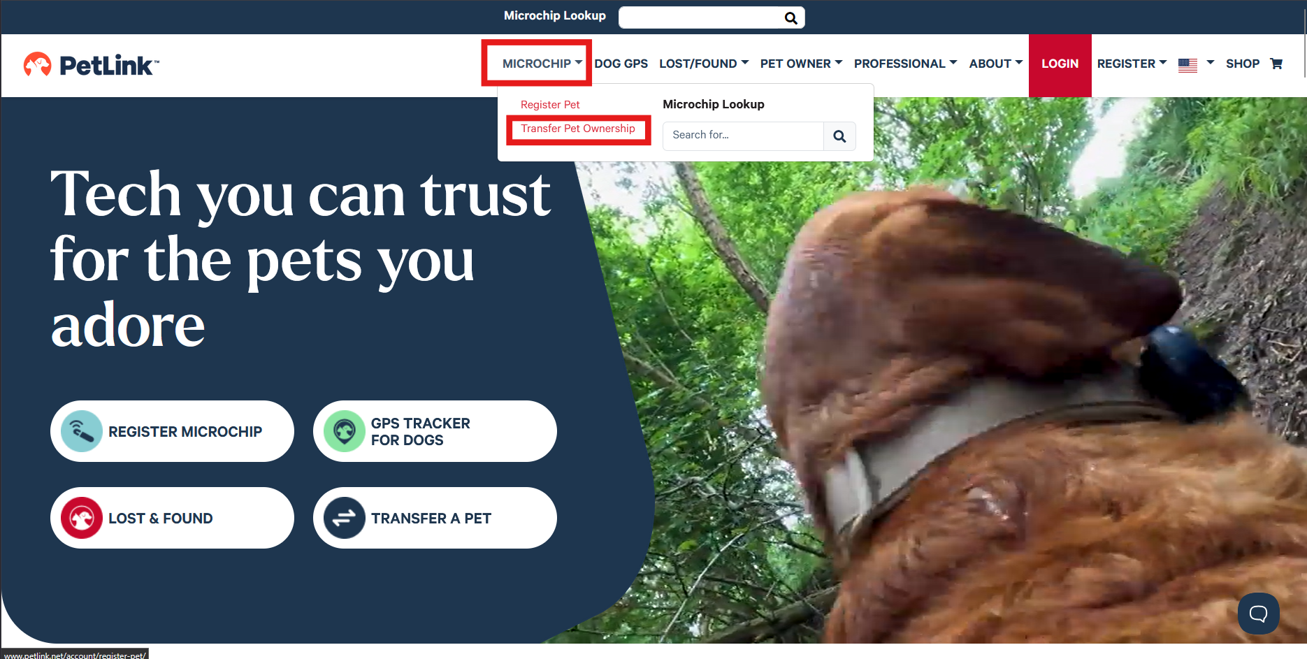 Or you can click on Microchip and then select Transfer Pet Ownership